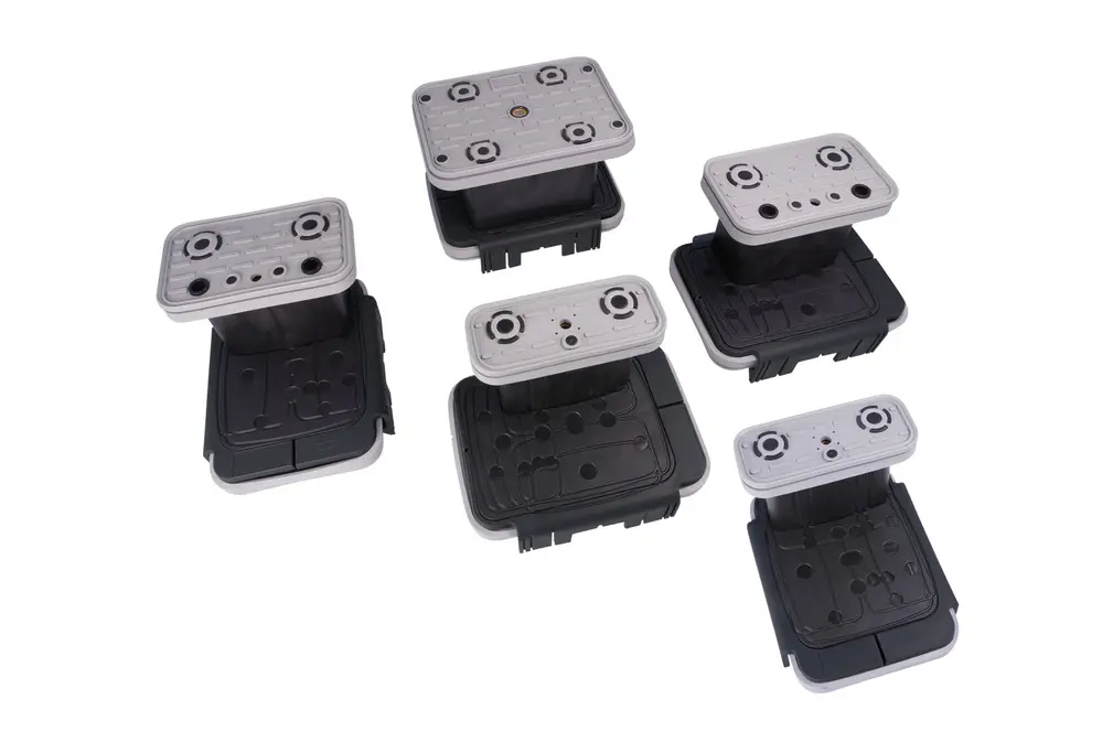 Whether using a 1-circuit or 2-circuit system, panel processing or frame production – console vacuum blocks from Schmalz can be positioned precisely and are quick and easy to replace when changing the order.